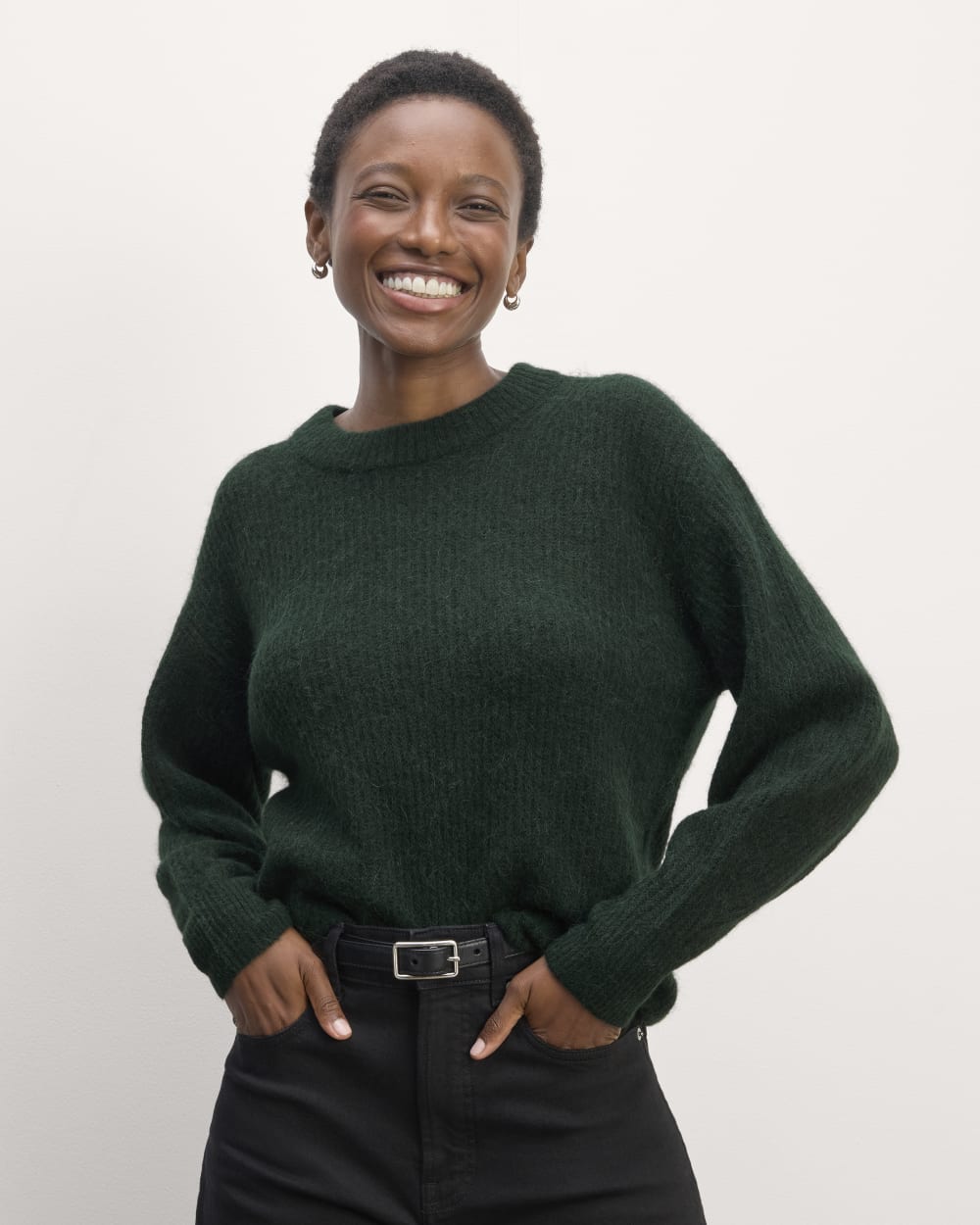 Giving all the warm and fuzzies??without the itch or the weight. in a classic crew neckline. it features a cool rib pattern. a relaxed silhouette. and is made from our prickle-free. pilling-resistant. and responsibly-sourced Alpaca blend. You’ll wear it to work. WFH. maybe even in bed??we won’t tell.