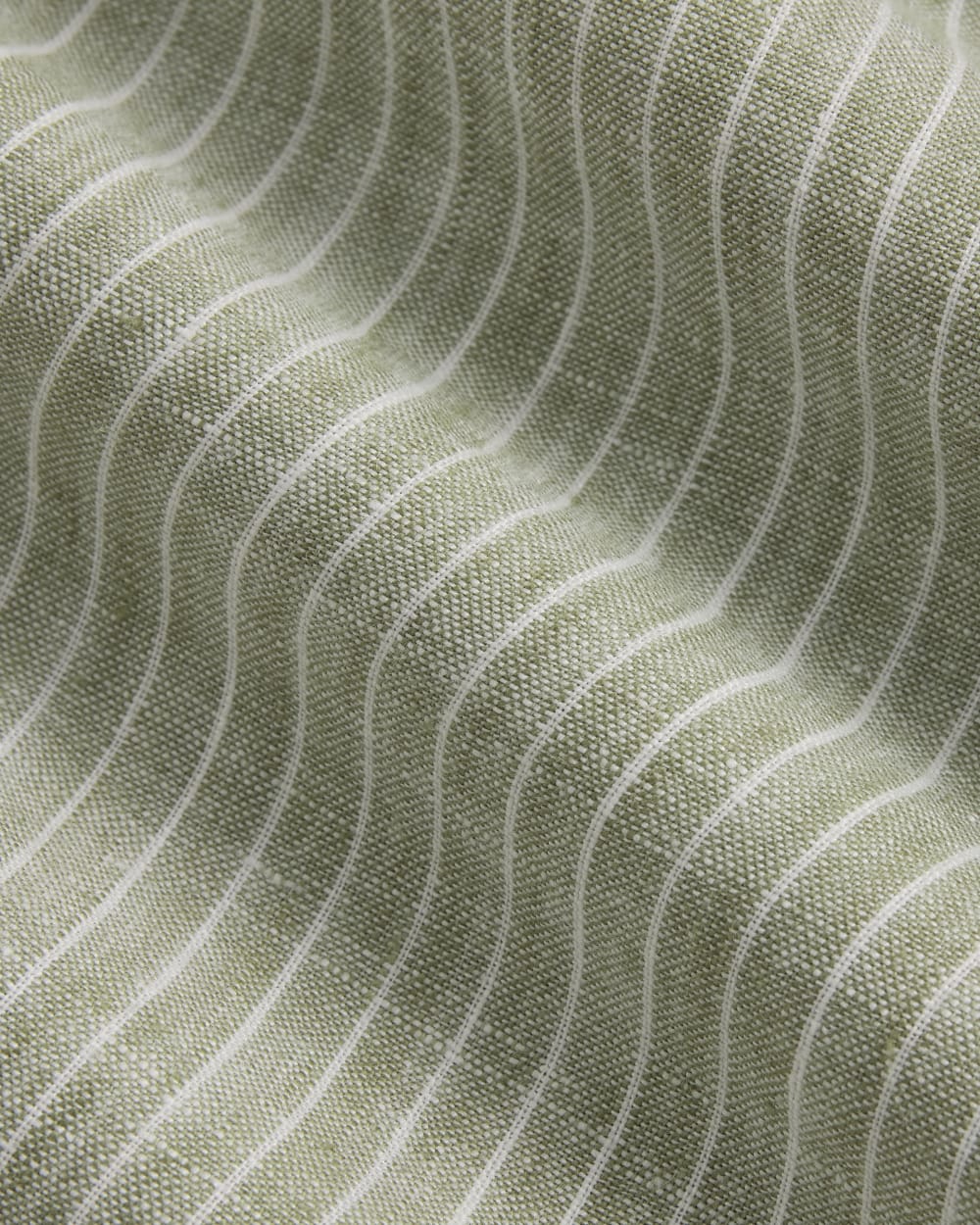 This piece features a mid rise. straight fit. regular length. and pull-on waistband. made with 100% linen.