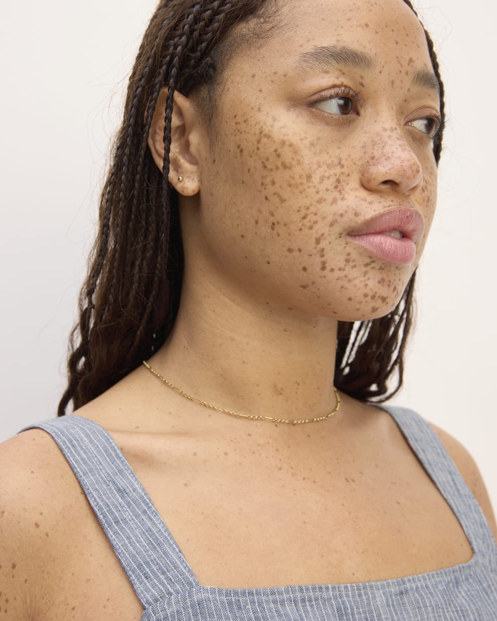 This piece features a relaxed fit. cropped straight leg. square neckline. elasticized back. side button detail with self covered buttons. a clean front. and made from 100% European Flax? Linen.