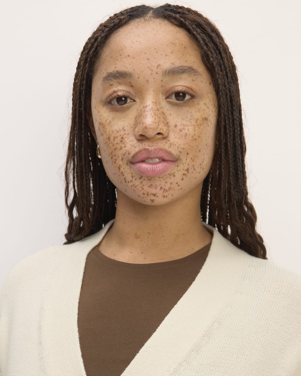 With its relaxed mood. The Organic Cotton Cardigan has a longer length. hitting below the hips. It features dropped shoulders. chunky rib stitching along the hem and sleeve cuffs. and is fastened with five center buttons. Made with 100% organic cotton. it’s the perfect layering piece. This cardigan is designed to fit oversized. For a true to size fit. we recommend sizing down.