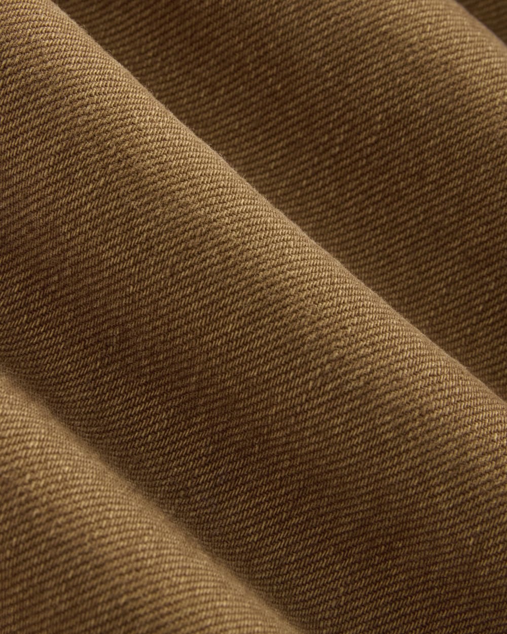 It features a center button placket. unique pocket details. and is made with organic cotton denim. Just throw it on and go.