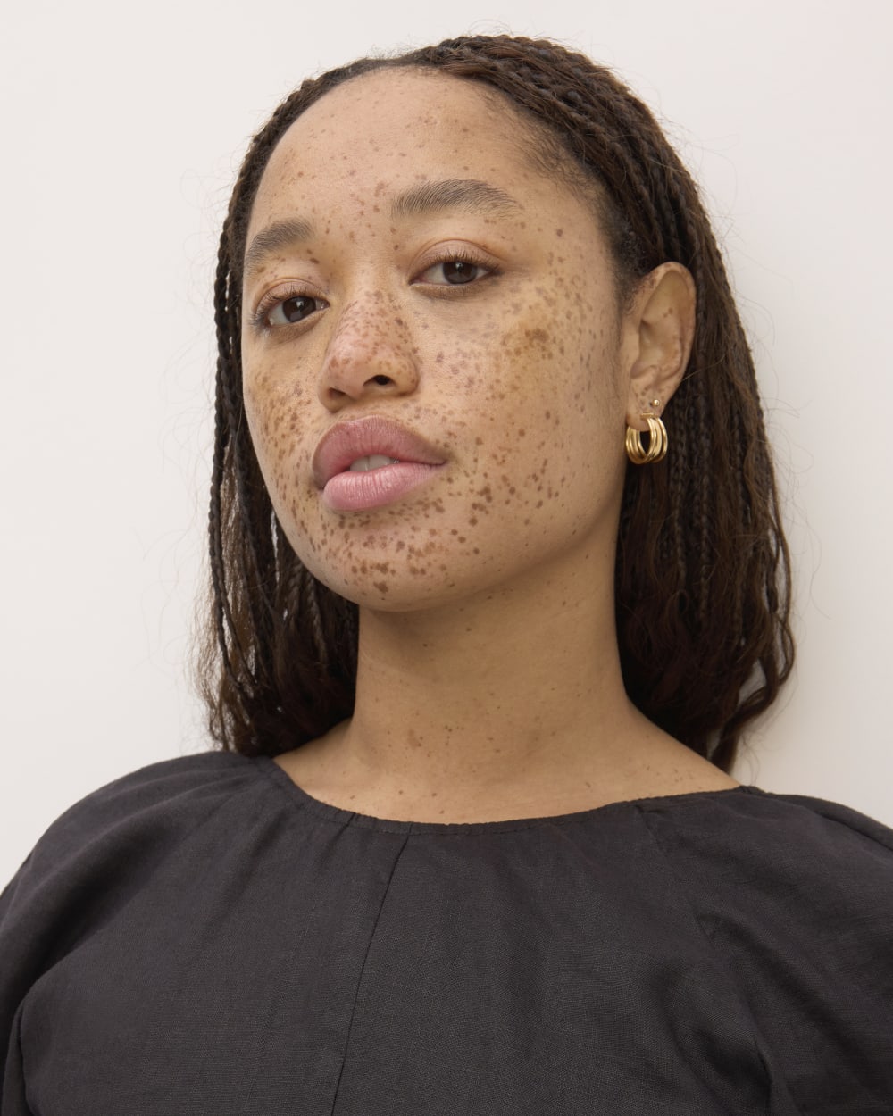 The Linen Short-Sleeve Scoop Midi Dress | Black
